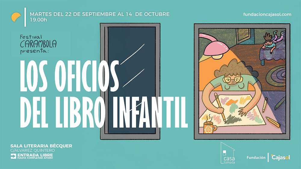 En este ciclo, organizado en colaboración con la Fundación Cajasol, contaremos con cuatro talleres-masterclass a cargo de grandes nombres del libro infantil. A lo largo de cuatro semanas, una sesión cada uno, estos autores nos darán herramientas y pistas para crear un libro infantil desde el punto de vista más práctico y directo, de frente: cuatro encuentros para componer las piezas que hacen que una obra dirigida a peques llegue a buen puerto.